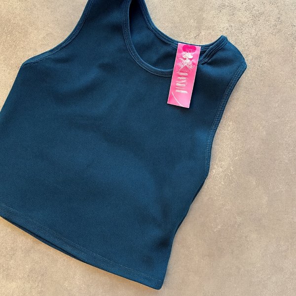 Top deportivo Shedyl Art. 6475. Confeccionado en morley otoman, un tejido acanalado que aporta elasticidad y suavidad, asegurando un calce cómodo y firme. Su diseño largo y sin mangas lo convierte en una prenda versátil, ideal para entrenamientos, actividades físicas o uso diario. Disponible en color verde y en talle 1, combina practicidad con estilo moderno.