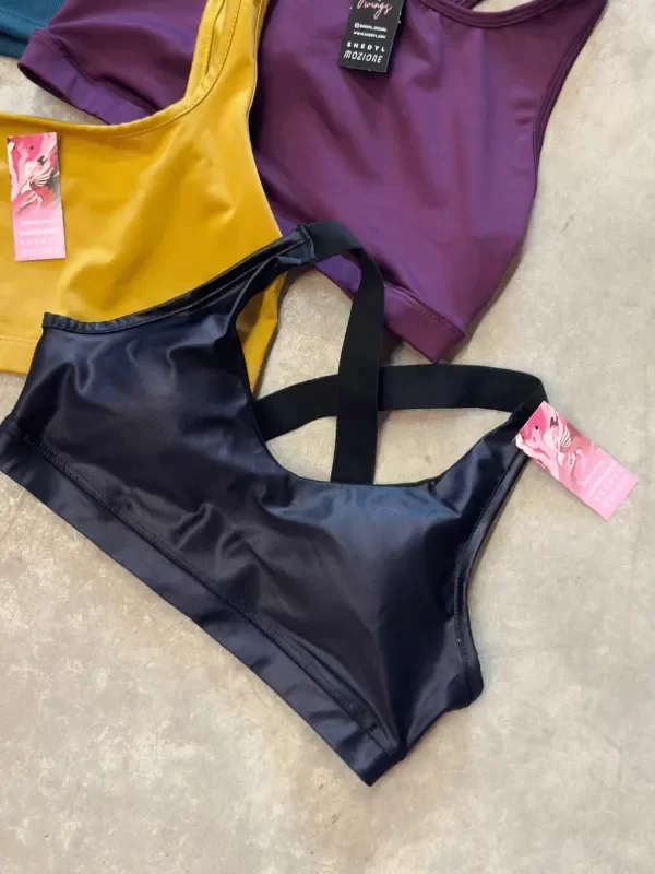 Top deportivo Shedyl Art. 6321. Confeccionado en tela elástica de alta calidad, ofrece un calce firme y cómodo que se adapta al cuerpo. Su diseño incluye taza desmontable, lo que permite mayor versatilidad y soporte según la preferencia de cada usuaria. Disponible en color negro y en talle 4, es una prenda ideal para entrenamientos, actividades físicas o uso urbano.