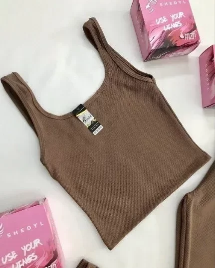 Top deportivo Shedyl Art. 6487. Confeccionado en morley otoman, un tejido acanalado que aporta elasticidad y suavidad, asegurando un calce cómodo y firme. Su diseño largo y sin mangas lo convierte en una prenda versátil, ideal para entrenamientos, actividades físicas o uso diario. Disponible en color café y en talles 1, 2, 3 y 4, combina practicidad con estilo moderno.
