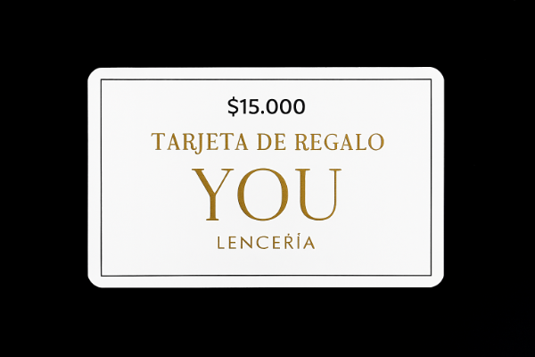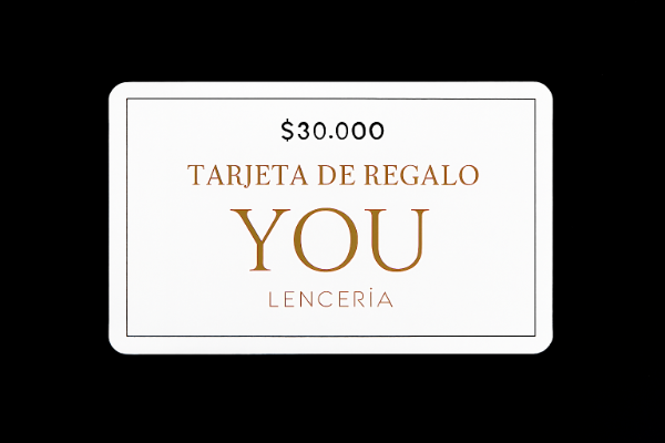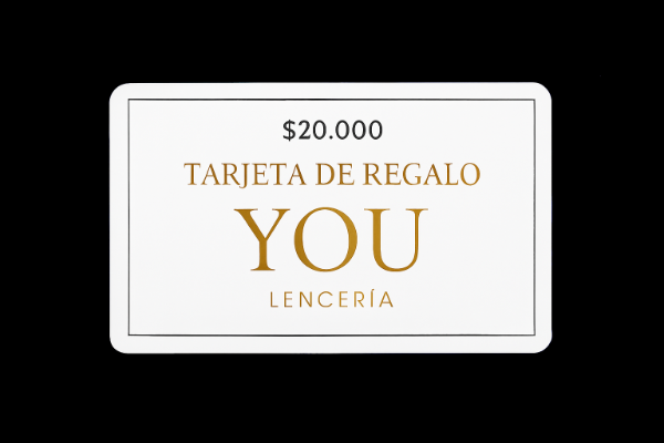 Tarjeta de regalo digital por $15000,$20000,$30000 y $50000 para utilizar exclusivamente en la tienda online de You Lencería. Es una opción ideal para regalar, permitiendo que la persona elija el producto que más se adapte a sus gustos.